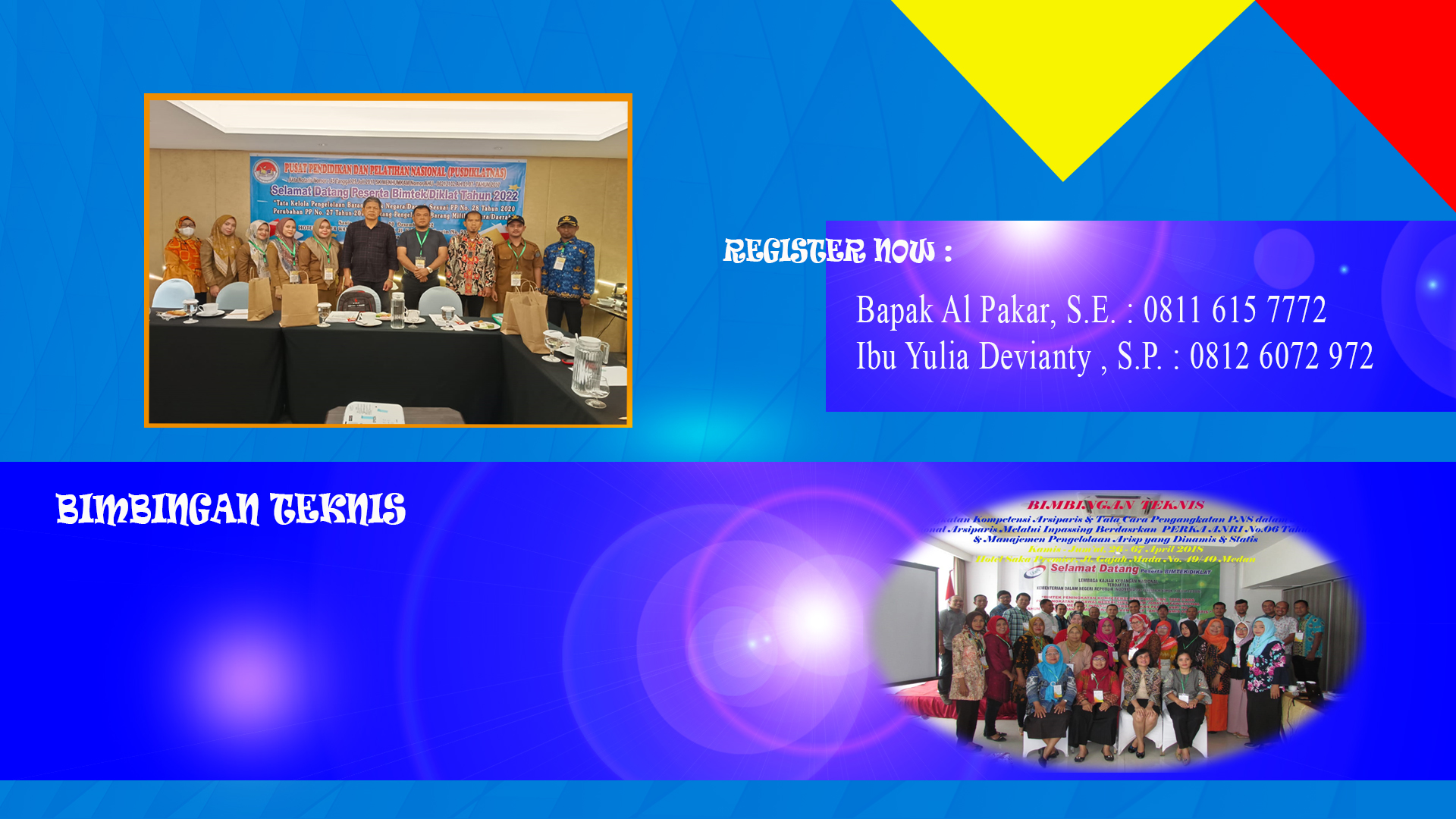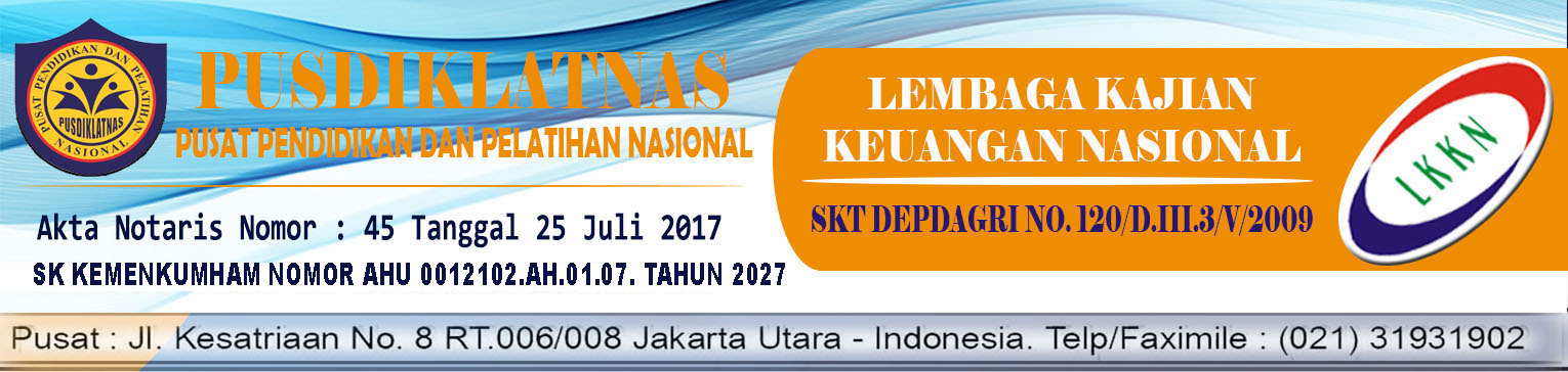 Seiring dengan landasan pemikiran diatas, sebagai simpatisan dan pemerhati terhadap pembangunan Nasional untuk membantu memberikan pemahaman yang baik kepada Aparatur Pemerintah Daerah, maka kami dari Pusat Pendidikan dan Pelatihan Nasional (PUSDIKLATNAS) akan mengadakan Bimbingan Teknis dengan tema / materi dan jadwal pelaksanaan terlampir (mohon dipilih salah satu Materi Bimtek dan Jadwal yang akan diikuti).